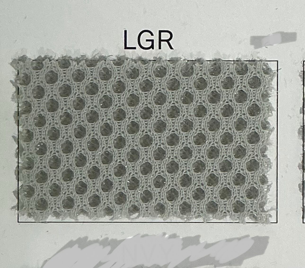 特殊ラッセル機を用いた3層メッシュ構造の経編です。通気性、クッション性に優れていて、鞄や帽子、靴等のパーツなどに重宝されます。